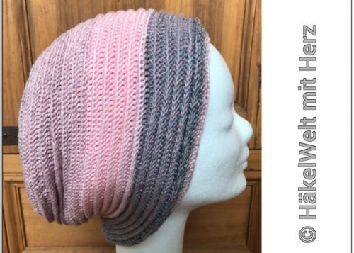 Hier kommt zu dem Dreieckstuch und zu den Pulswärmern "Romantica", noch die passende Beanie-Mütze :-)