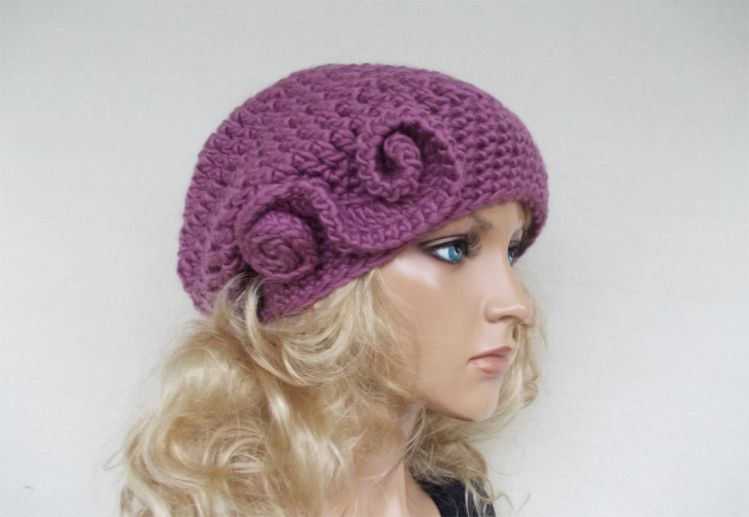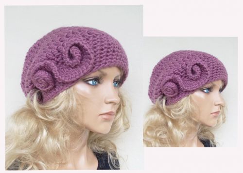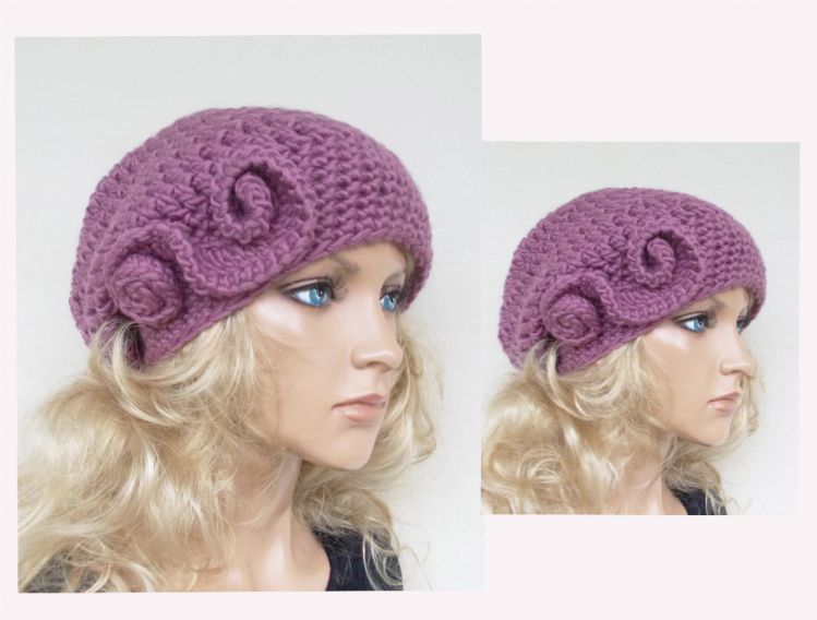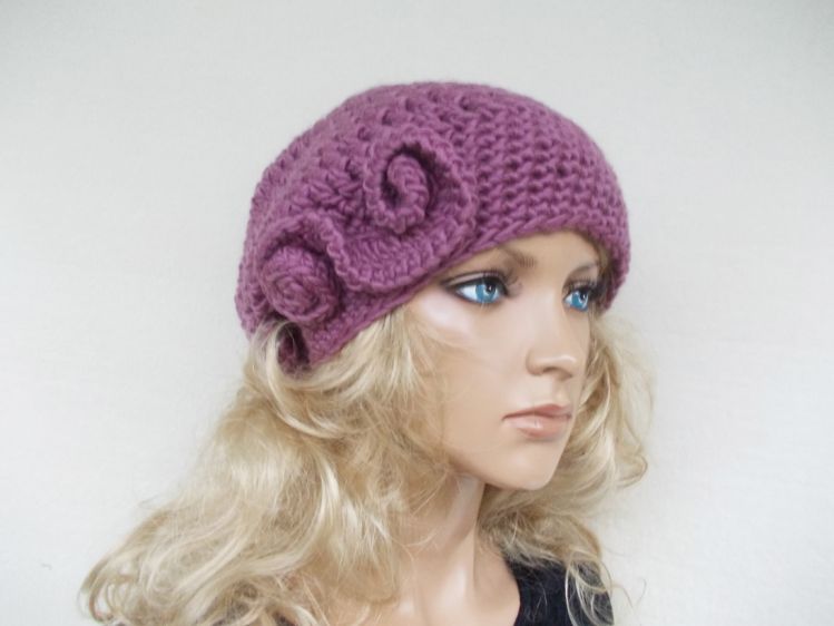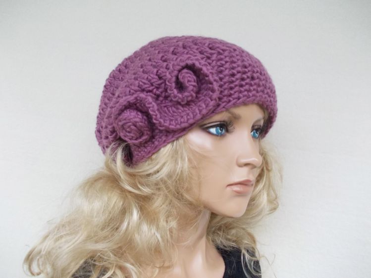 Eine schlichte und dennoch elegante Beanie mit extravaganter Häkelblüte, Häkelblüten sind meine Leidenschaft. Sie ist mit einem besonderen kleinen Häkelrand gefertigt, siehe auch Bild einzelne Blüte.