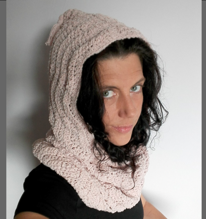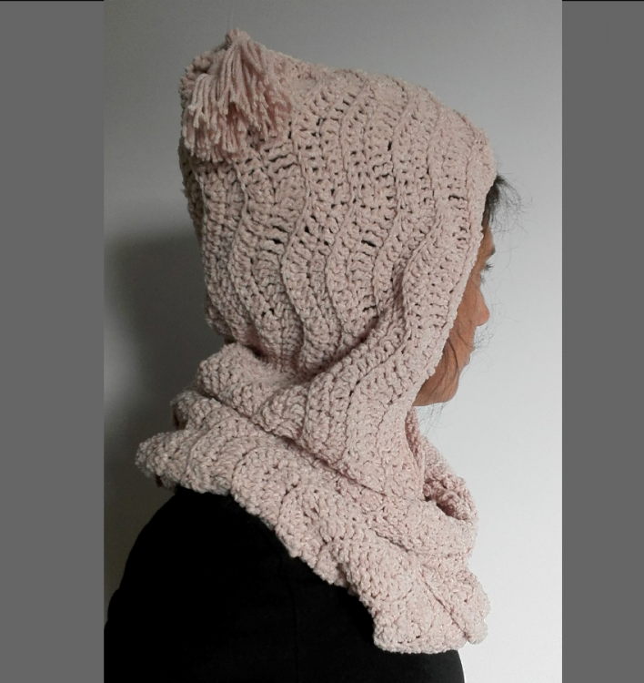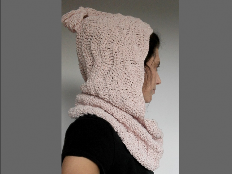 Häkelanleitung Kapuzenloop „weiche Welle“ Scoodie Troddel