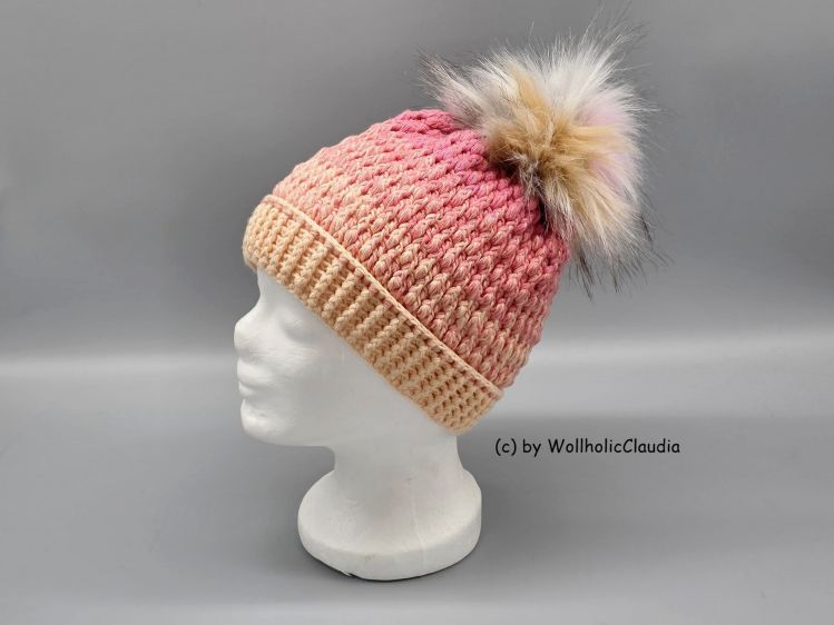 Im Beispiel hier (Mütze) mit Verlaufsgarn/ 6-fädig: