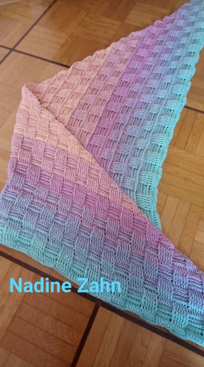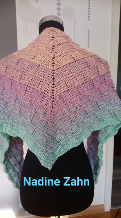 Hier erhältst du die Anleitung für ein sehr flaches Dreieckstuch. Es besteht aus Stb, sowie aus vorderen und hinteren RStb.