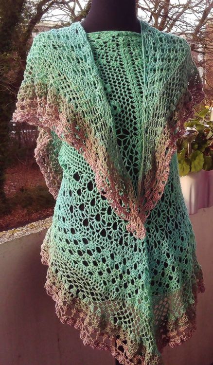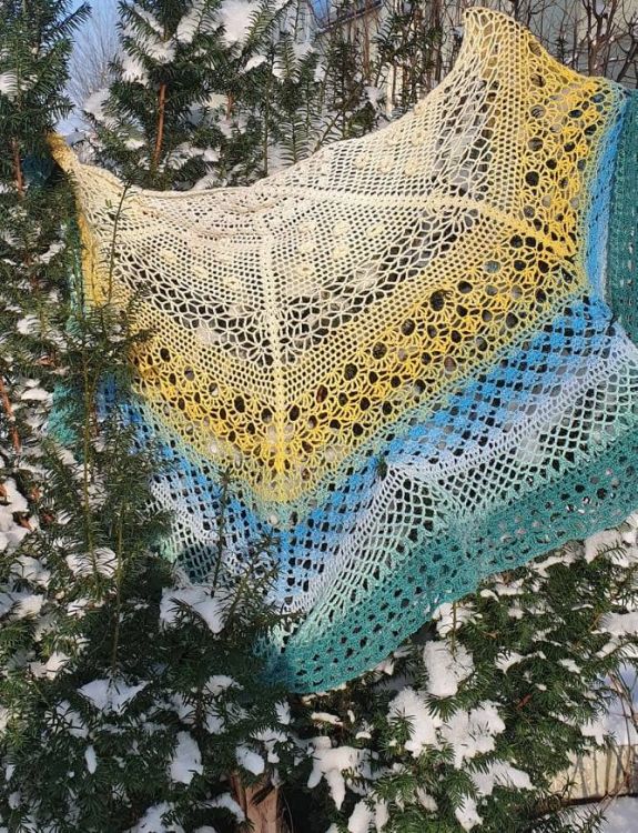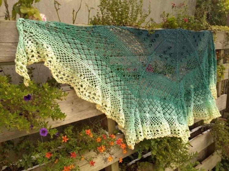 Ich habe hier einen Farbverlaufsbobbel genommen, du wirst mindestens eine Lauflänge von 2000m ll benötigen. Je nachdem wie fest oder locker du häkelst wirst du mehr benötigen