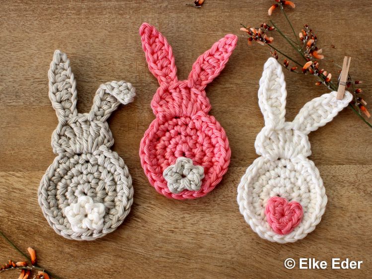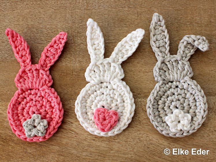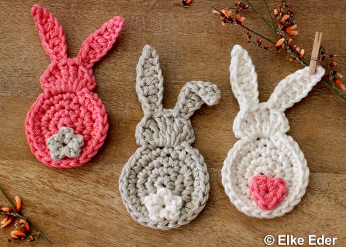 Diese süßen Häschen mit ihren Herz- bzw. Blumenschwänzchen sind vielseitig verwendbar. Ihr könnt damit euren Osterstrauch, Türkranz, Fenster, Serviettenringe etc. dekorieren oder ihr macht daraus ein Mobile oder eine Girlande. Auch als Taschenbaumler, Schlüsselanhänger oder als Applikation auf einem Kindertäschchen sind diese putzigen Häschen ein Hingucker. Sie werden in einem "Rutsch" gehäkelt, gehen superschnell und du benötigst lediglich ein paar Wollreste.
