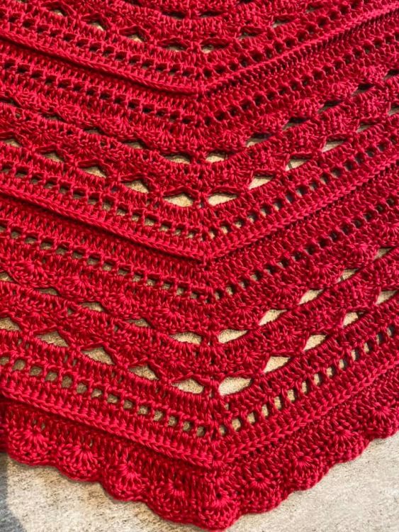 Das Tuch besteht aus Stäbchen, Luftmaschen und Reliefstäbchen.