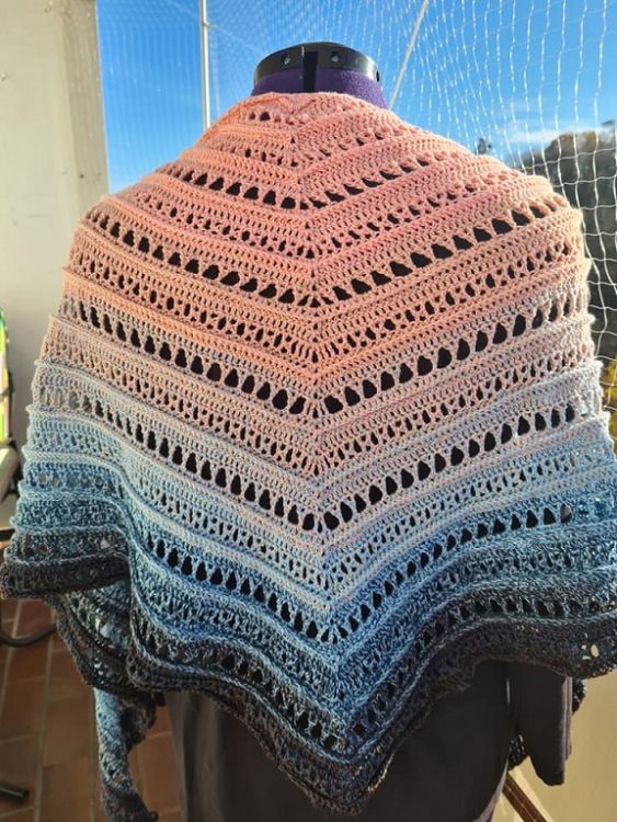Das Tuch erhielt den Namen „Novia“, was übersetzt Freundschaft heißt, als mich meine liebe Daniela Traub, die für mich als Administrator und Testhäklerin, in meiner Heimat besuchte. Sie war zum ersten Mal bei mir und wir verstanden uns auf Anhieb super gut. Wir wurden gemeinsam kreativ und kreierten Muster. Vielen lieben Dank, für die tollen Tage, liebe Daniela!
