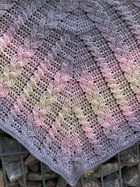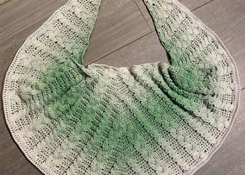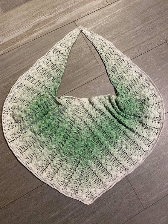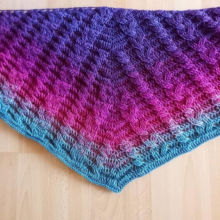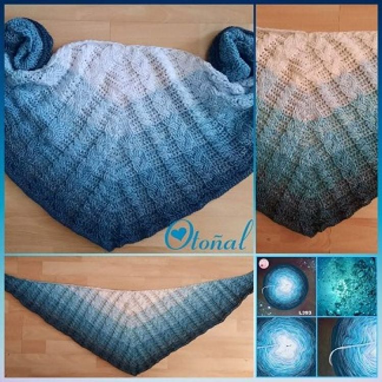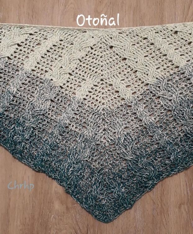 Diese Variante des „Otoñal“, ist im Gegensatz zu einer klassischen Variante, länger und nicht so tief gearbeitetes Dreieckstuch.