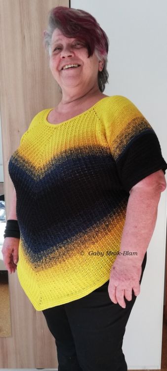 Gaby: Gr. 52 / 447 g = 1790m 4-fädig Baumwolle mit NS 3 gearbeitet, kurzarm