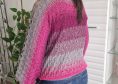 Der Pulli wird in zwei Teilen von unten nach oben gehäkelt und auch die Ärmel werden gleich mit gehäkelt. Ich habe einmal mit zwei identischen 3fädigen Bobbel (Farbverlaufsgarn) aus 50% Baumwolle und 50% Polyacryl gearbeitet und jeweils einen für Vorder- und Rückenteil verwendet, somit sind beide Seiten gleich. Den zweiten habe ich mit einfarbigen Baumwollbobbel gehäkelt. Am Schluss häkelst Du die beiden Teile einfach zusammen. Dann wird der Halsausschnitt umhäkelt und an den Ärmel jeweils ein Bündchen gearbeitet. Das Bündchen an der unteren Kante ist optional.