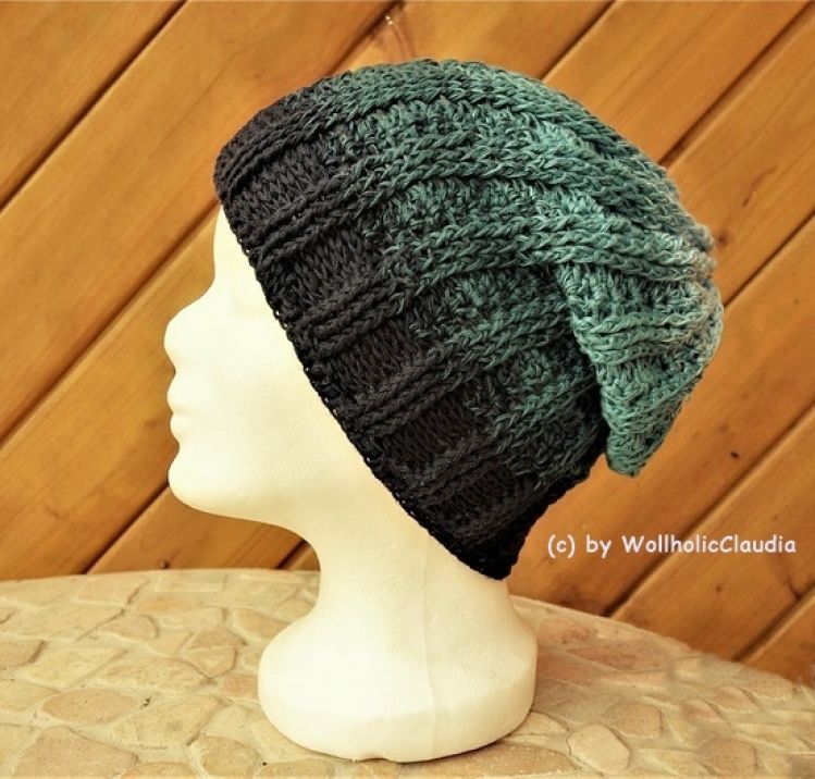 für die Mütze wird (je nach Größe ) zwischen 250m und 300m Garn benötigt