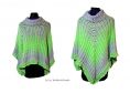 Bei angegebener Garn- und Nadelstärke hat der hier abgebildete Poncho eine Spannweite von 1,60 m und eine Tiefe ( gemessen ohne Kragen, von Halsausschnitt bis Spitze ) von 0,70 m. Er kann selbstverständlich verkleinert bzw. vergrößert werden.