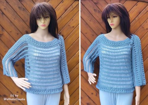 Häkelanleitung Pulli Pullover "Lochfraß" Alle Größen