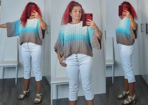 Oversize - weil die Arme locker und weit gehäkelt werden können.