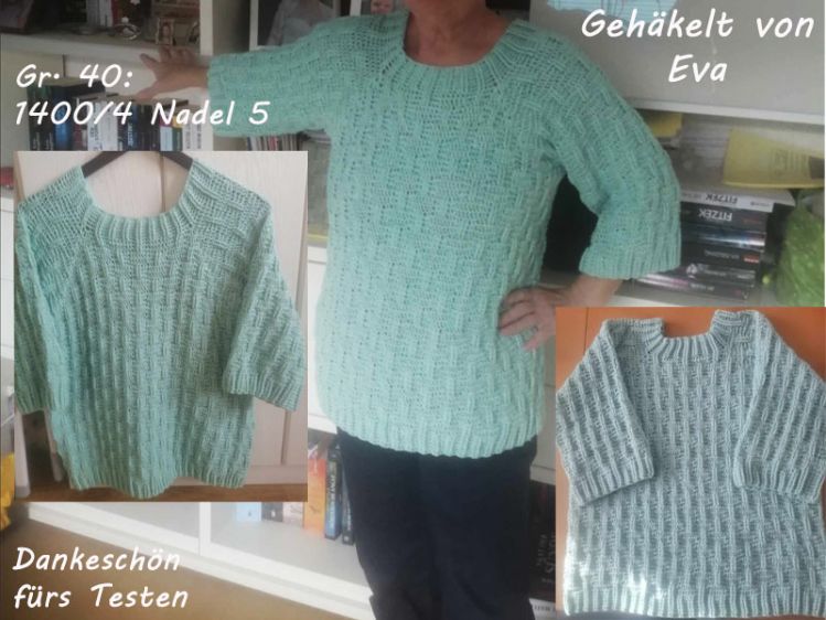 So ist es auch möglich einen enger anliegenden Pullover oder ein Kleid zu häkeln.