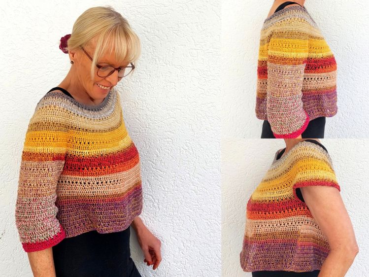 Nicht nur für den Herbst! Der Herbstliche Begleiter mit Rundpasse, kann zu jeder Jahreszeit getragen werden. Das Oberteil kann mit oder ohne Ärmel gehäkelt werden!