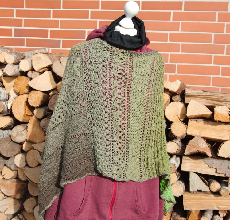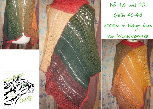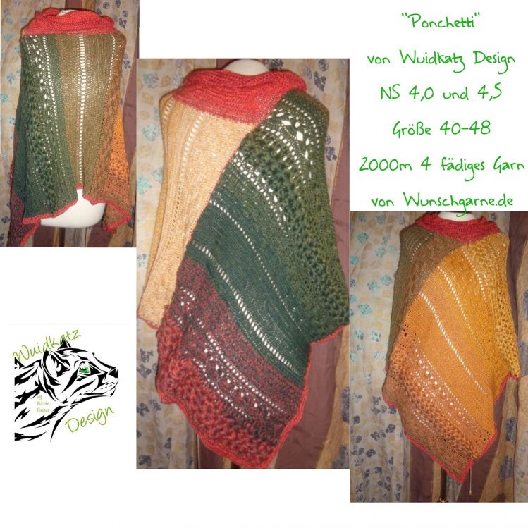 Mustermix-Poncho in Größe 32/34-56/58, welcher aber beliebig erweitert werden kann, so das jede nur erdenkliche Größe damit machbar ist. für Anfänger und Fortgeschrittene geeignet