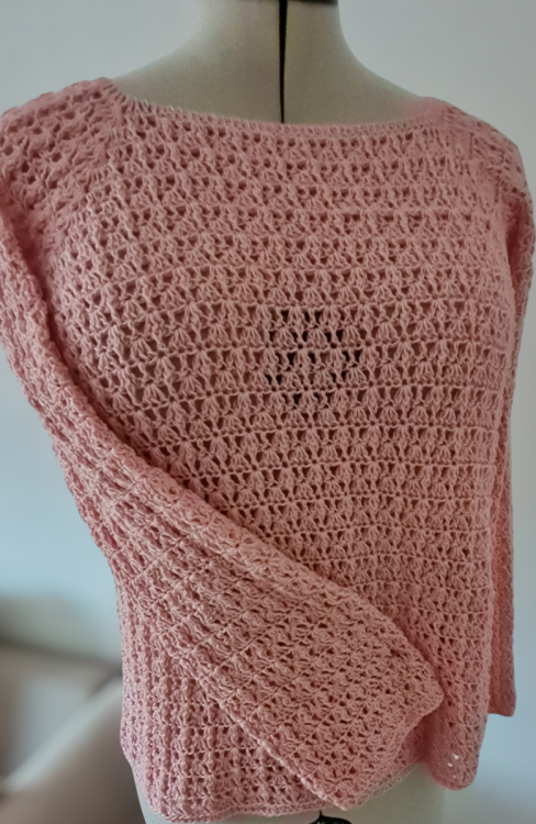 Meinen Pulli habe ich aus 1400 Meter Hobbii Twister Solid (960 Meter für den Korpus und 2x 220 Meter für die Ärmel) und nS 3,5 gehäkelt