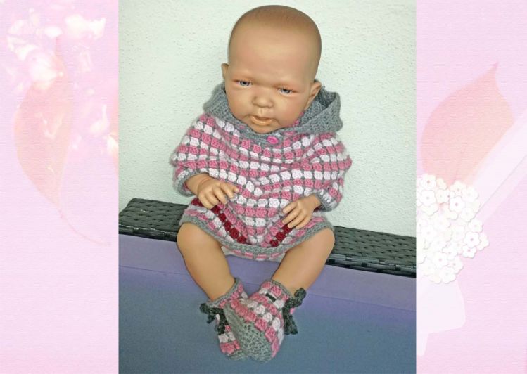 Pünktchen ist ein niedlicher Poncho für Babys der in 3 verschiedenen Größen gehäkelt werden kann Gr. 56 / 62 Gr. 68 / 74 Gr. 80 / 86 Durch den lässigen Schnitt passt der Poncho über einen langen Zeitraum unnd kann locker über Shirt oder Body getragen werden. Die angehäkelte Kapuze ist total praktisch und sieht natürlich toll aus.