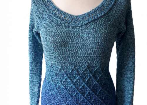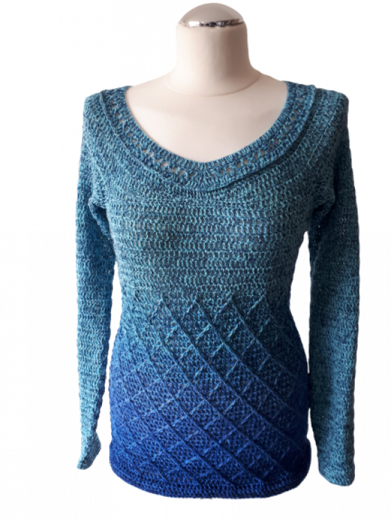Beim vorgestellten Produkt handelt es sich NICHT um das fertig gehäkelte Kleidungsstück, sondern um eine Anleitung in Schriftform mit Häkelschrift, um dieses Kleidungsstück selbst zu häkeln.