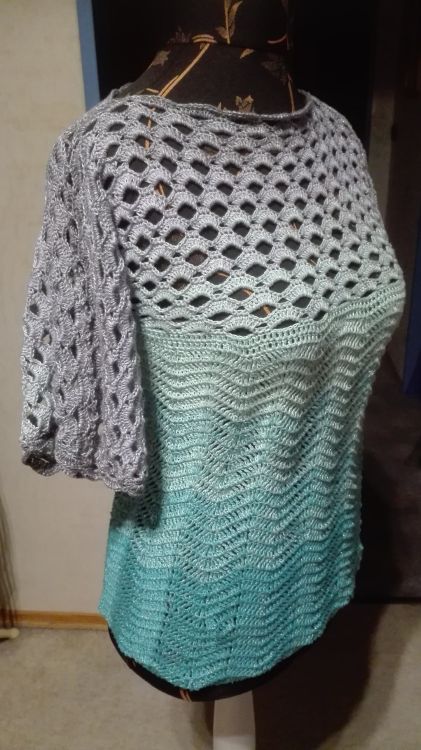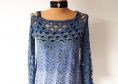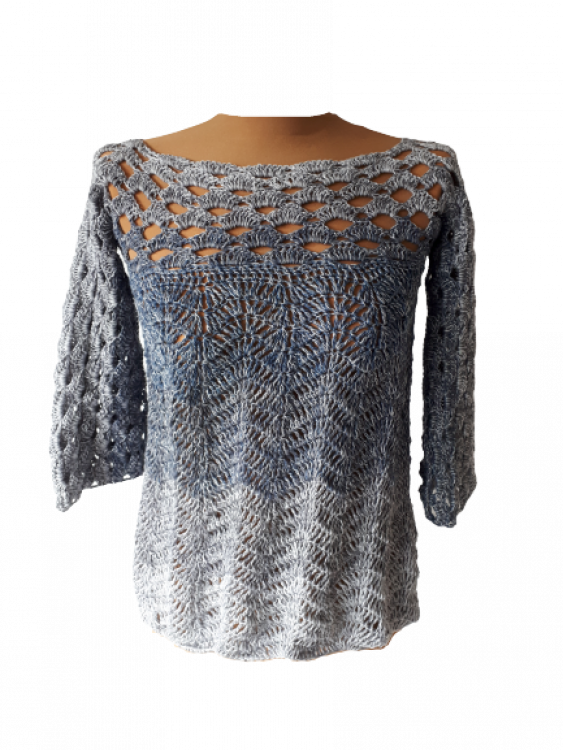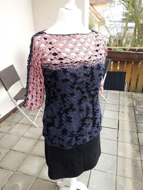 Pulli “Welle” - ein Pulli für jeden Tag, ein Eyecatcher und Multitalent. Das Muster ist so aufgeteilt, dass man nicht unbedingt etwas darunter ziehen muss, man kann ihn aber auch über ein langarm-Shirt in der kälteren Jahreszeit anziehen.