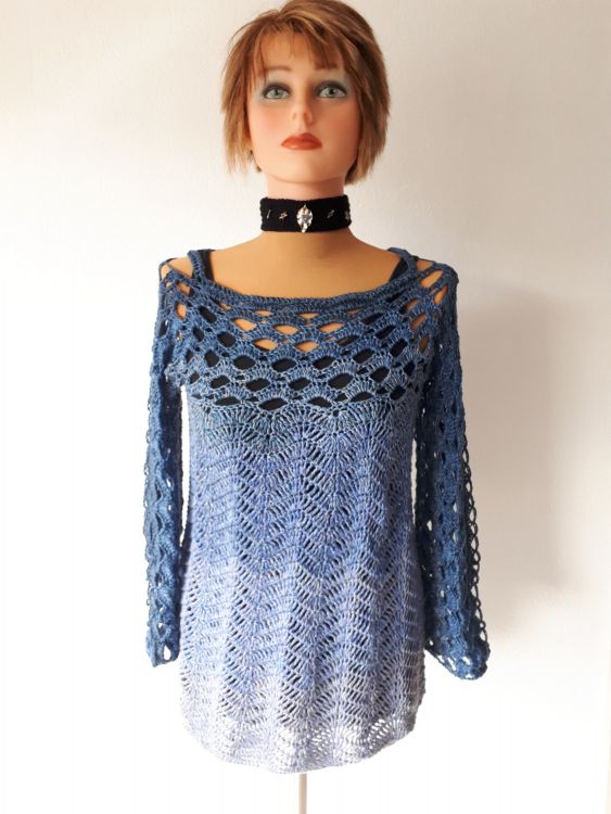 Beim vorgestellten Produkt handelt es sich NICHT um das fertig gehäkelte Kleidungsstück, sondern um eine Anleitung in Schriftform mit Häkelschrift, um dieses Kleidungsstück selbst zu häkeln.