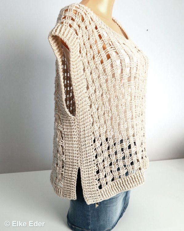 Du kannst dir den Pullunder natürlich beliebig verlängern oder auch kürzer arbeiten. Tragemöglichkeiten gibt es ebenfalls viele: Im Sommer mit einem Bikinioberteil oder Top darunter; an kühleren Tagen über eine Bluse, einen Rollkragenpulli, ein Langarmshirt oder ein enges Kleid; zum Rock, zur Jeans, zur langen oder kurzen Hose, das Top ist eine tolle Ergänzung deiner Gaderobe und wird Blicke auf sich ziehen.