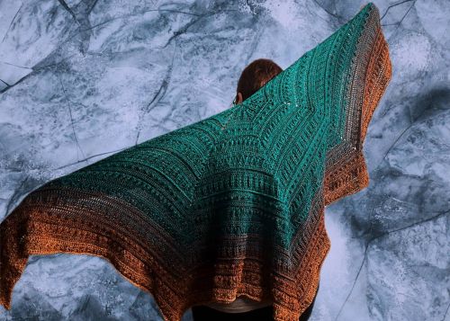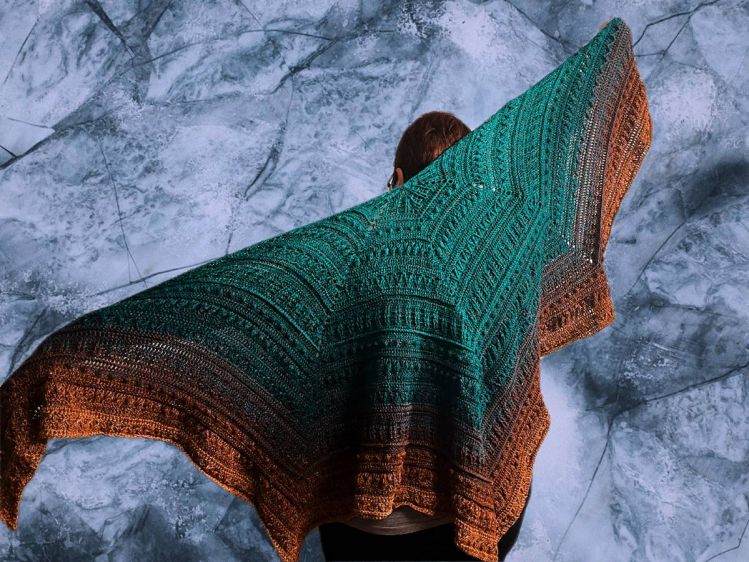 Sehr schönes, dichtes Muster, das sich gut häkeln lässt. Das große Tuch lässt sich auch toll als Ponchotuch tragen.