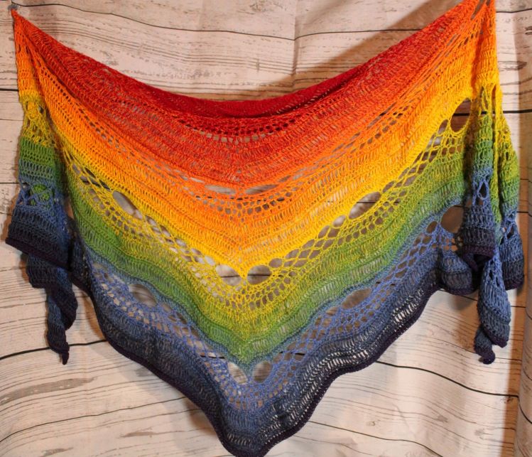 Crochet pattern flat triangular shawl Rainbow Brimborium