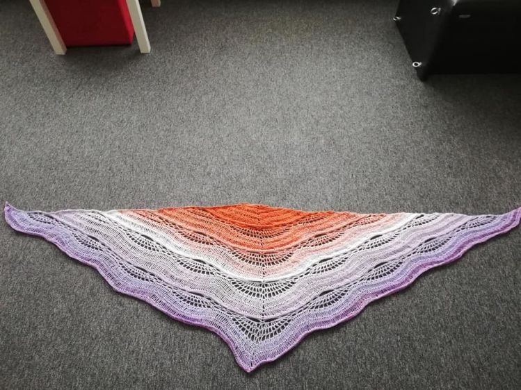 Hier erhältst du die Anleitung für ein flaches Dreieckstuch, das aus einem fernsehtauglichen und leicht eingänglichem Muster besteht.
