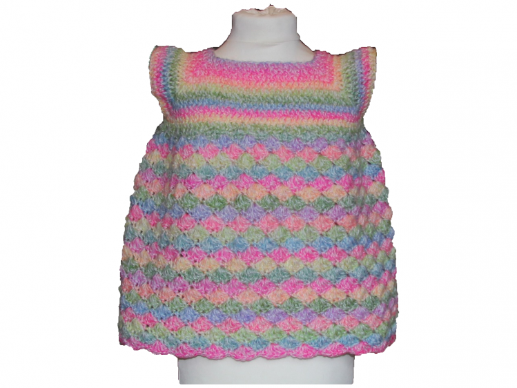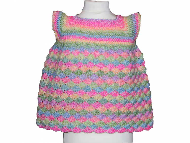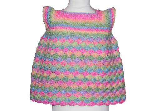 Die Anleitung enthält eine **unbebilderte Druckversion** sowie eine genaue Erklärung, wie man das Kleidchen in **jeder Größe** und aus **jedem Garn** herstellen kann!