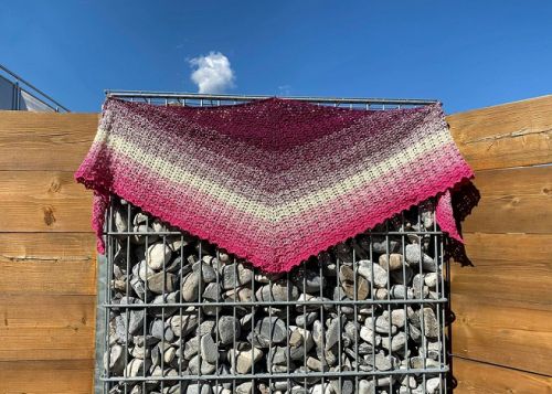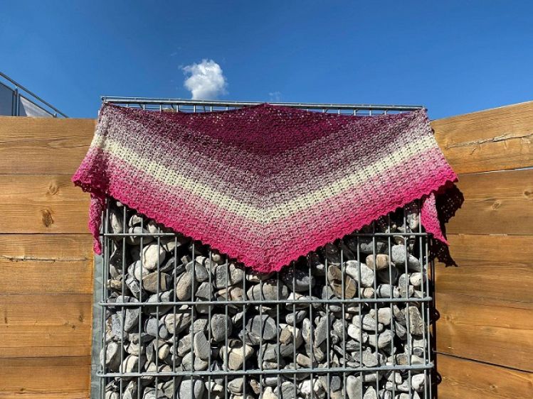 Die abgebildete Variante des „Respira“ wurde mit der Mützenstraße Knutschkugel TT183 mit einer Lauflänge von 1000m (4fädig) mit Nadelstärke 3,5 gehäkelt.