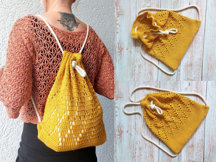 Der Rucksack kann in allen Größen gehäkelt werden. Dadurch verändert sich der Garnverbrauch.