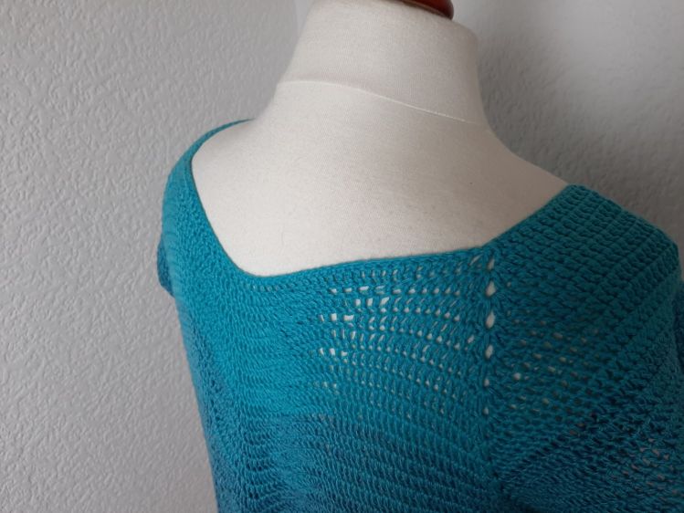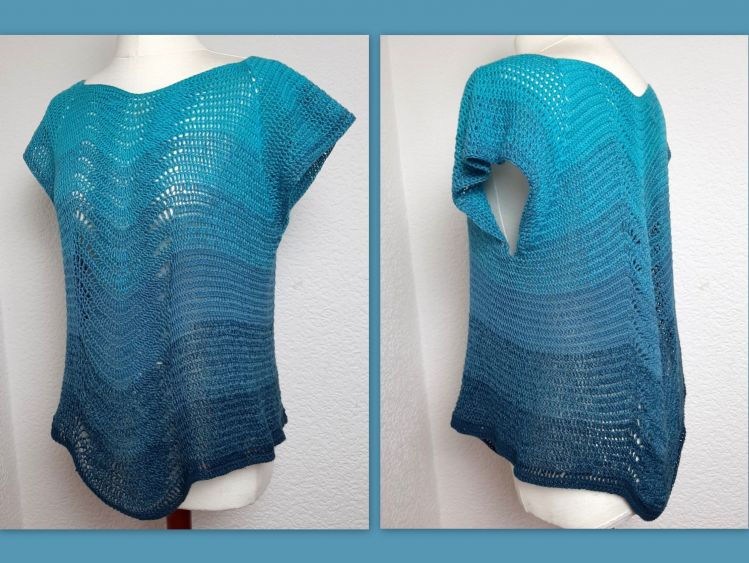 Du magst es locker, luftig, leicht? Dann häkel Dir doch dieses schöne, figurfreundliche RVO Shirt mit Wellenausschnitt. Es ist individuell an ALLE Größen anpassbar. Der geschwungene Ausschnitt ergibt sich durch das Wellenmuster was Vorder- und Rücketeil durchläuft. Durch das Muster erhält das Shirt an den Hüften etwas an Weite und liegt nicht so eng an. Der Pulli wird in Raglan-von-oben Technik gehäkelt. In der Anleitung erkläre ich Euch, Schritt für Schritt, in Fotostrecken mit zugeordnetem Text, sowie einer Häkelschrift und Skizze, wie Ihr dieses Shirt häkelt. Alle Seiten sind nummeriert. Auch für Anfänger geeignet. Bei Fragen stehe ich zeitnah zur Verfügung.