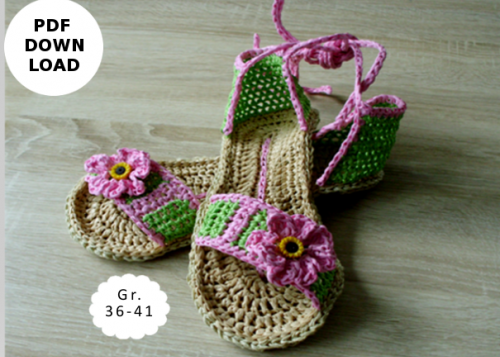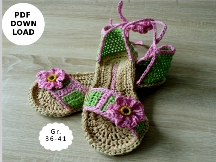 Tolle Häkelsandalen aus weichem Viskosebast für den Sommer.