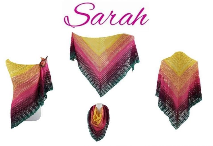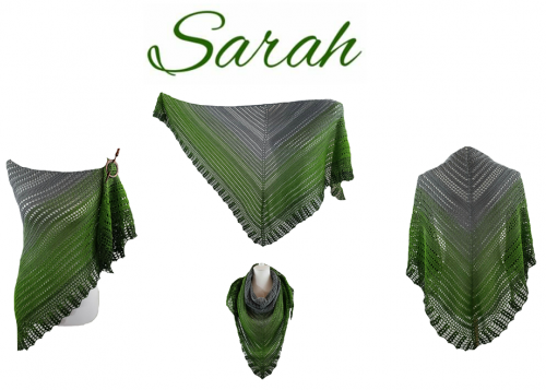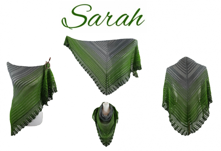 Sarah, das verspielte Tuch der besonderen Art. Das Muster ist verspielt und trotzdem zu jedem Anlass tragbar. Es geht leicht zu häkeln und ist somit Anfänger geeignet. Die Anleitung ist schriftlich Schritt für Schritt erklärt und enthält eine Häkelschrift.