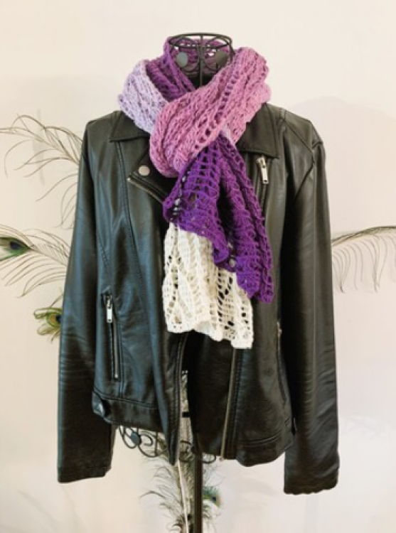 Der Schal kann in beliebiger Breite und Länge gehäkelt werden, genaue Informationen sind in der Anleitung enthalten, wie das Muster verbreitert werden kann.