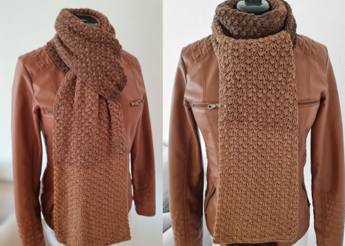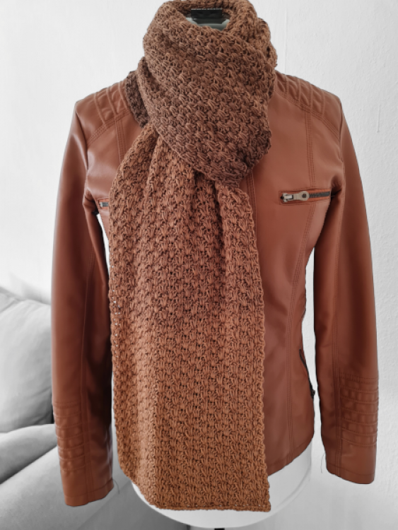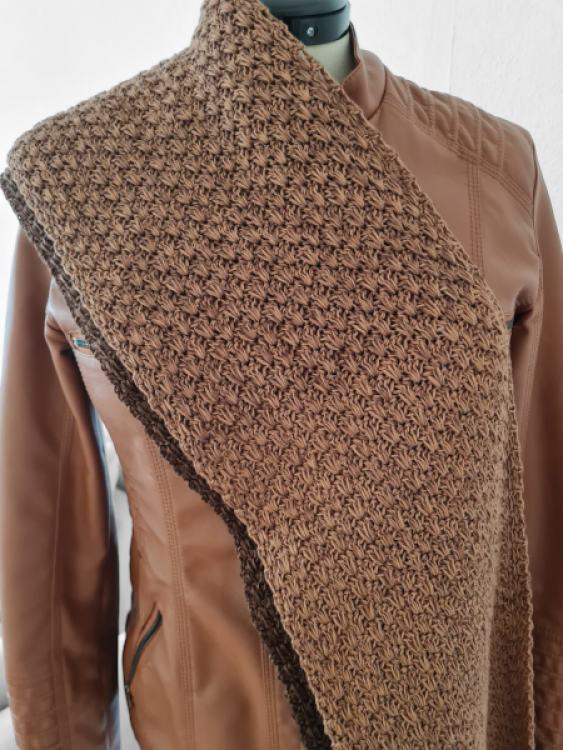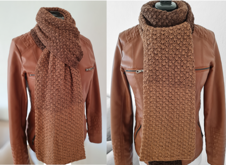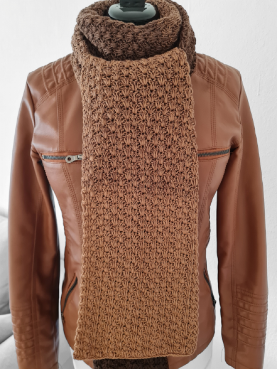 Der Schal kann in jeder gewünschten Größe und Breite gehäkelt werden. Das abgebildete Modell hat eine Größe von 220 x 25cm