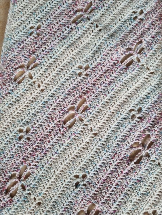 Ein 4fädiger Bobbel mit 650m Lauflänge und Nadelstärke 3,5 ergab 150cmx25cm