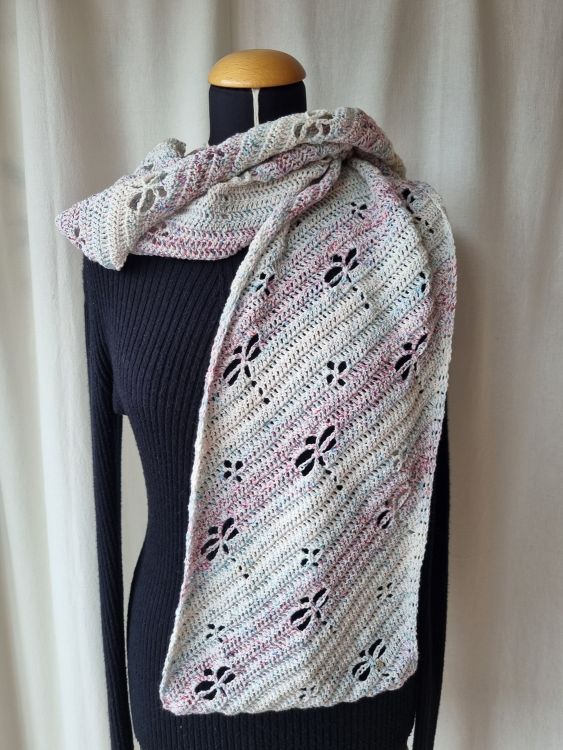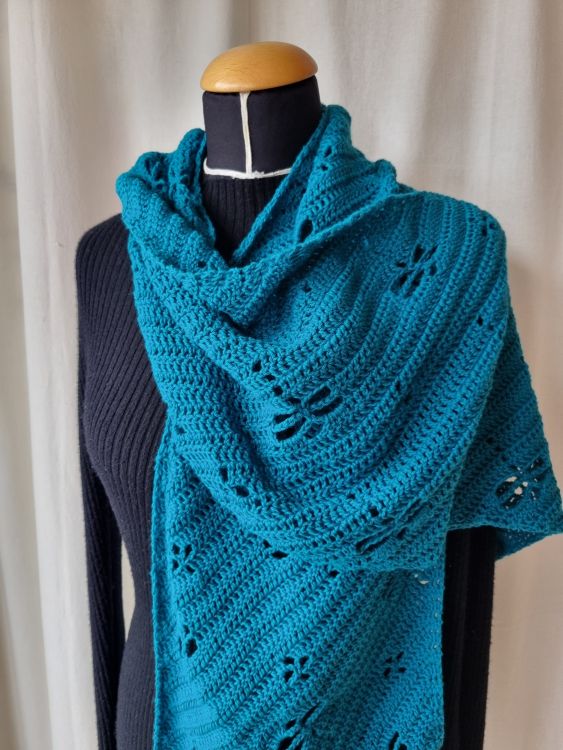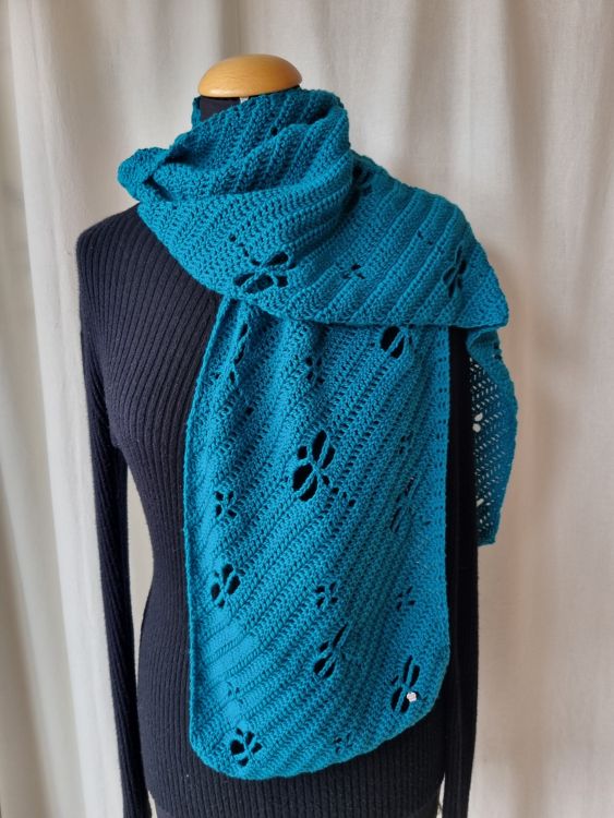 Dieser Schal wird schräg gehäkelt und erzielt damit eine tolle Trageoptik.