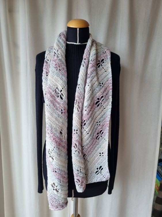 Wer kleine Farbverlaufsbobbel oder 8/4-Baumwollknäule verhäkeln möchte, hat mit diesem Schal eine tolle Wahl getroffen.