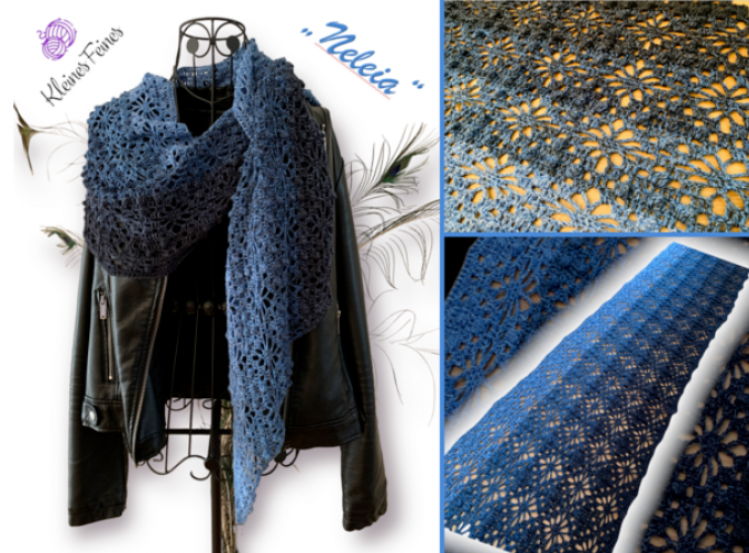 With this pattern you can crochet the airy stole "Neleia" - it has a wonderful loose pattern and as an eye-catcher pointy ends.