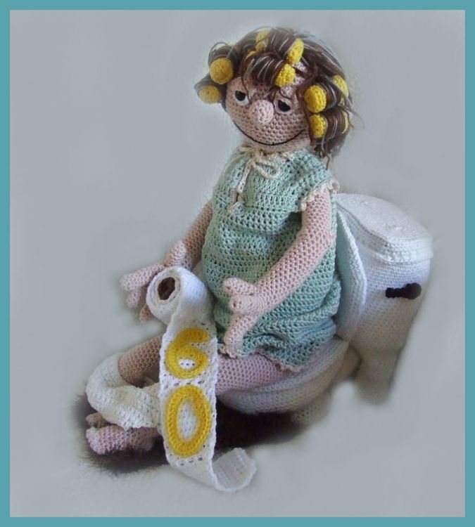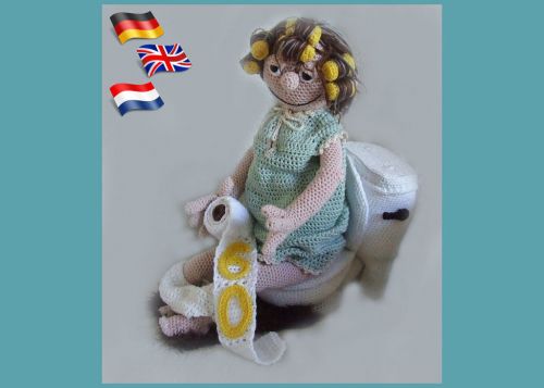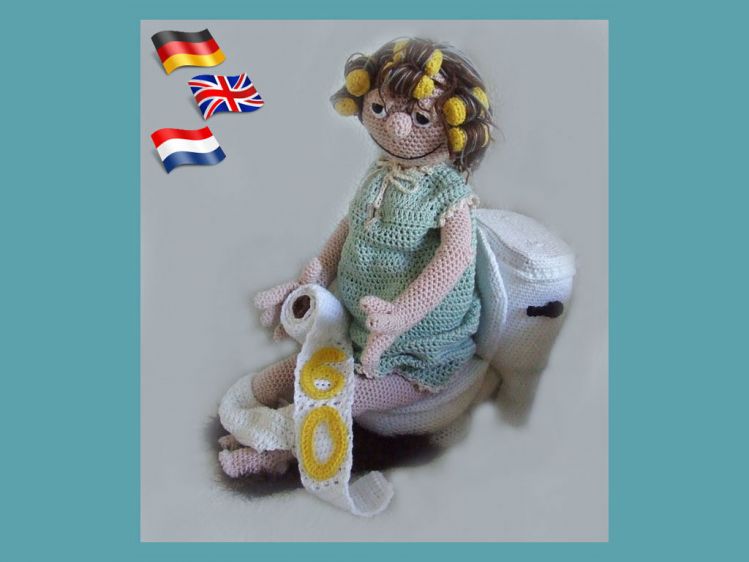 * The doll is 30 cm (=sitting on toilet) (hook size 3).