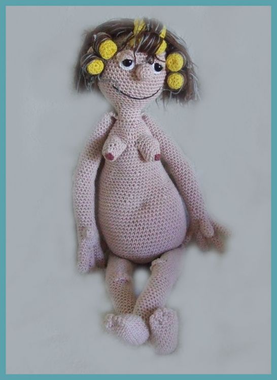 * De pop wordt (bij gebruik van haaknaald 3) 30 cm groot (=zittend op toilet)