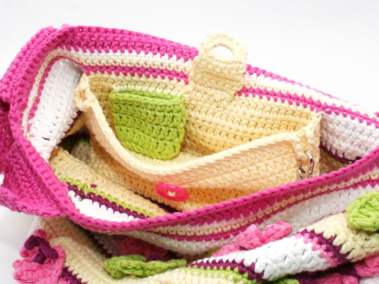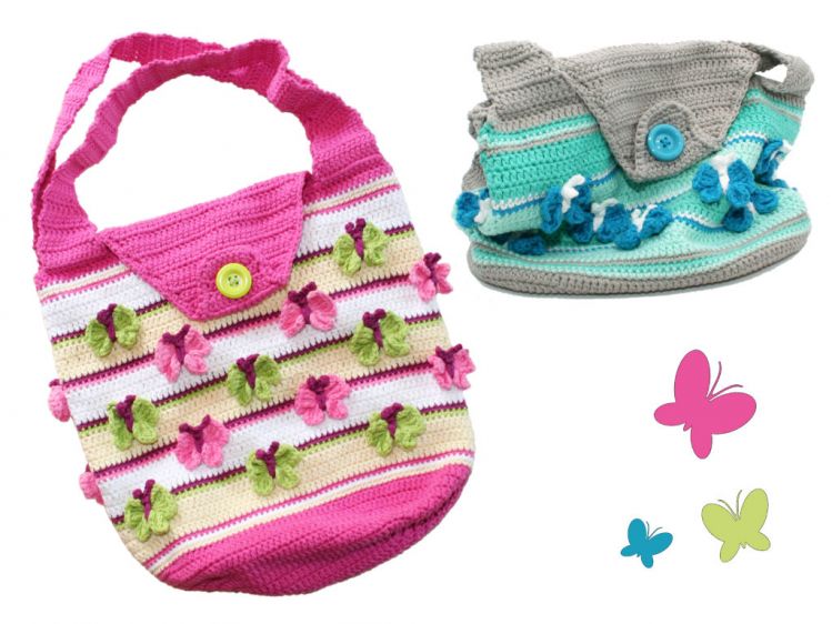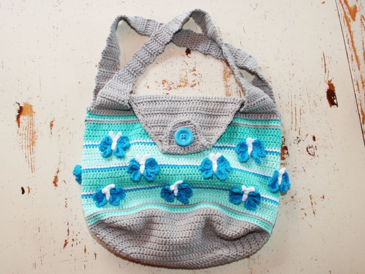 Du kannst die Tasche in zwei Größen häkeln: die kleinere hat 3 Runden Schmetterlinge, die größere 5 Runden.