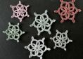 Die Schneeflocken haben einen Durchmesser von ca. 9 cm bis 13 cm (je nach Modell und verwendetem Garn)