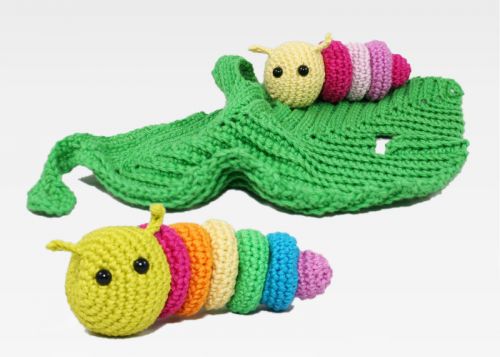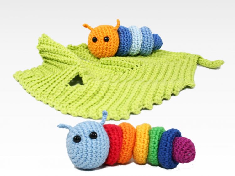 Aus der kleinen Raupe lässt sich auch ganz prima eine längere Rassel-Variante und/oder ein Greifling häkeln. Die Anleitung ist mit dabei. :)