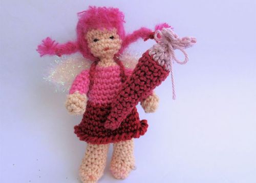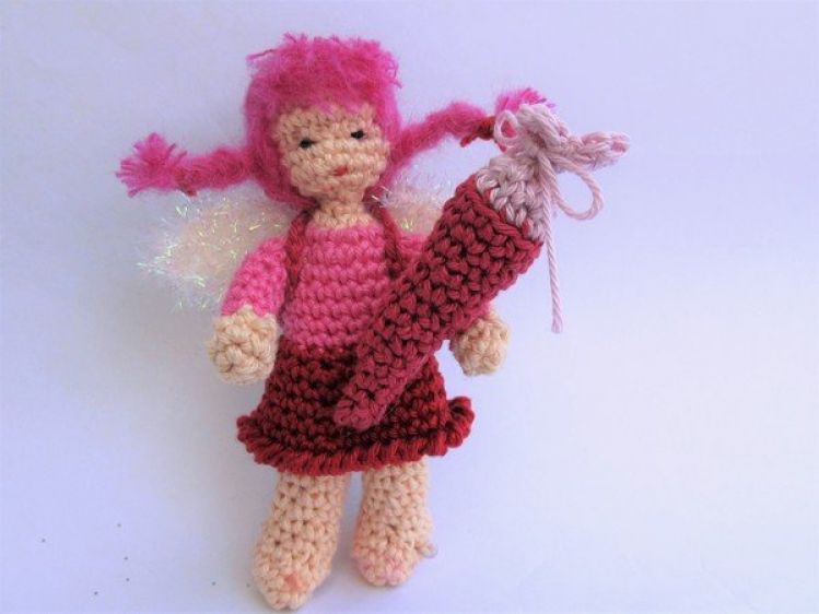 Das Engelchen wir etwa 12 cm großund kann am Schulranzen baumelnd das Kind jeden Tag in die Schule begleiten und beschützen.