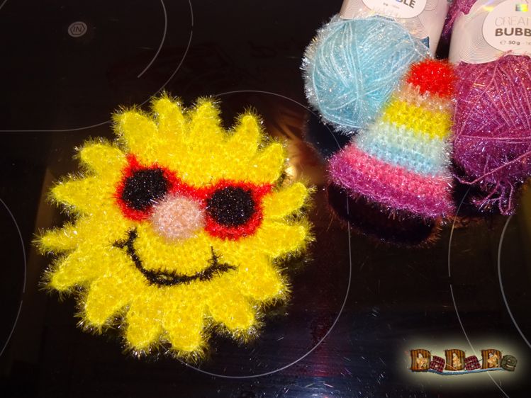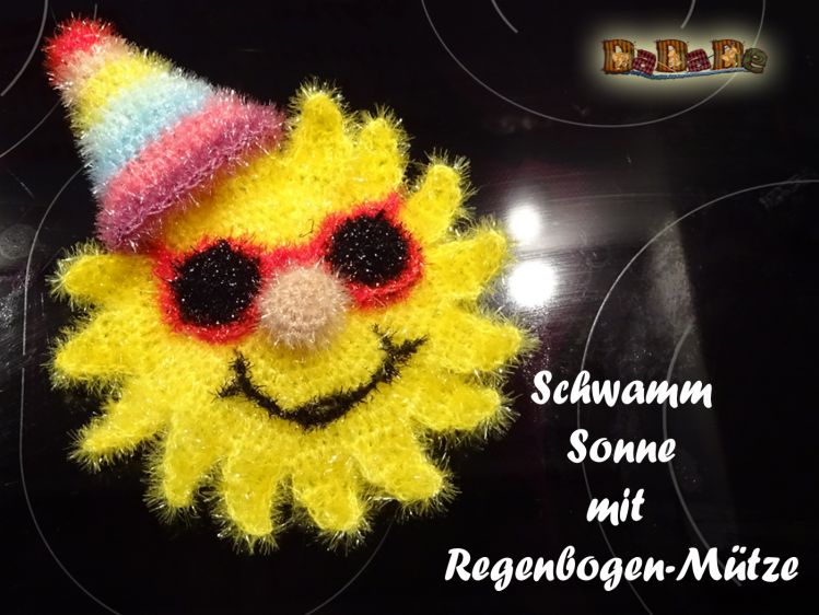Sie kaufen hier die Anleitung für diese fröhliche Sonne, sowie der Regenbogen-Mütze.