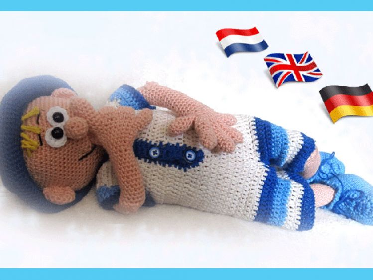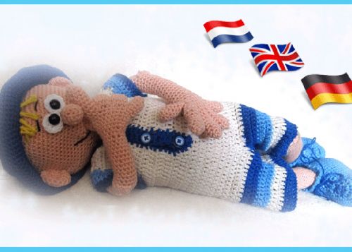 * De pop wordt (bij gebruik van haaknaald 3) 45 cm groot.