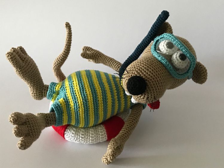 Die Anleitung beinhaltet die Figur, Badehose, Schwimmring, Taucherbrille und Schnorchel.