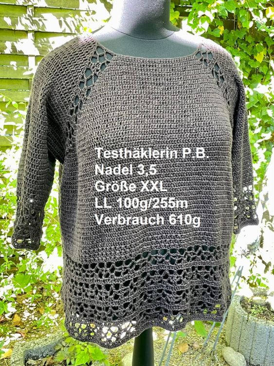 Die Häkelanleitung ist für Größe S-XXXL. Die Tunika kann aber problemlos an Deine Größe und Länge angepasst werden.